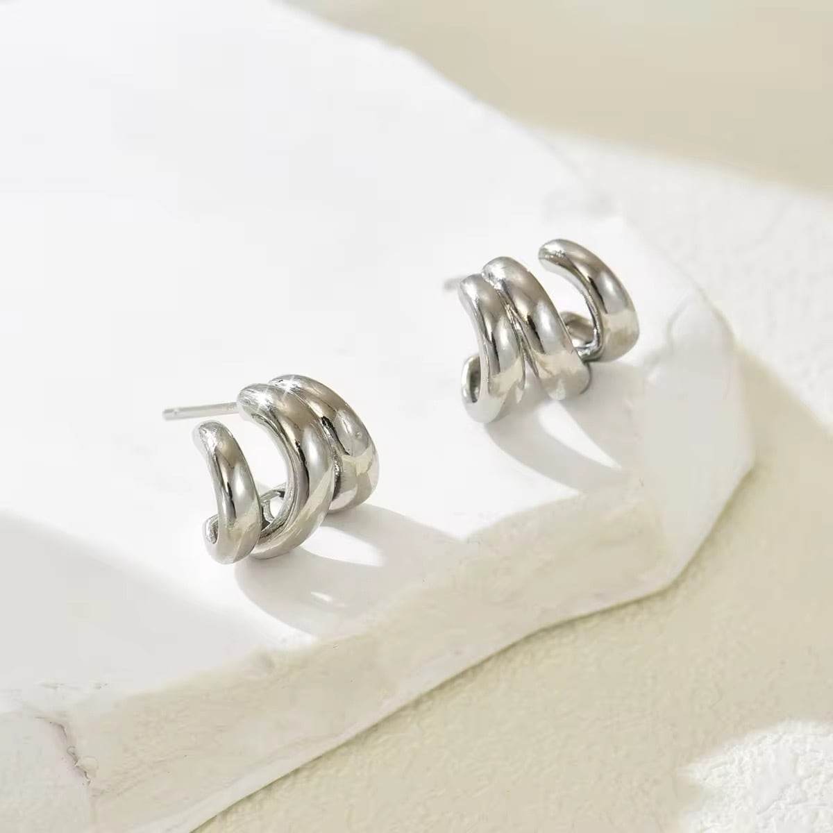 レイヤード風に見えるスタイリッシュなデザインでお仕事にも使える高見えピアス◎